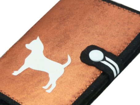 Chihuahua Hülle aus Filz mit goldenem Satin EU-Heimtierausweis für den Impfpass
