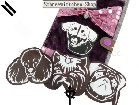Auf dem Cover wird das Bild deiner gewünschte Hunderasse verarbeitet. Auf Wunsch wird auch der Namen deines Hundes mit aufgedruckt.