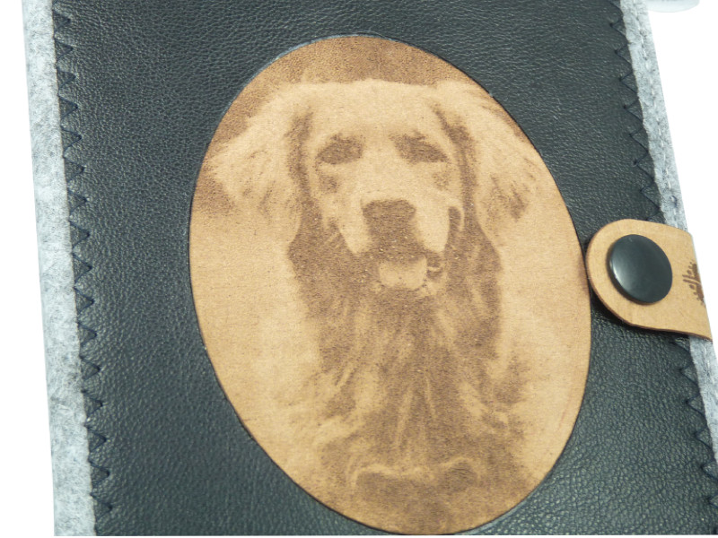 Golden Retriever EU-Heimtierausweis Impfpassausweis Hülle aus Filz mit Laser Gravur in Leder in schwarz