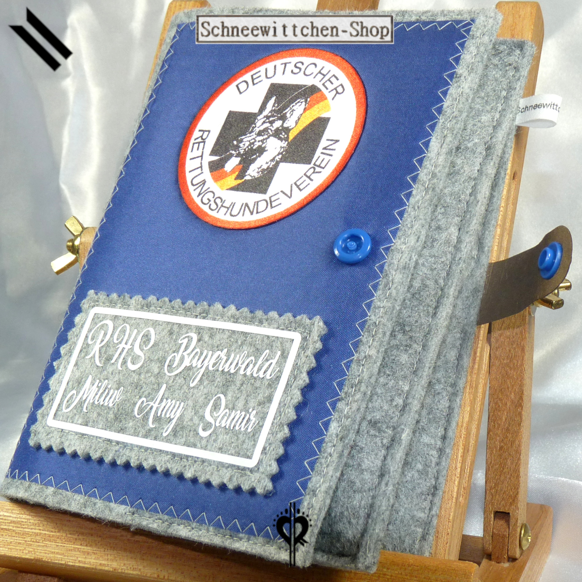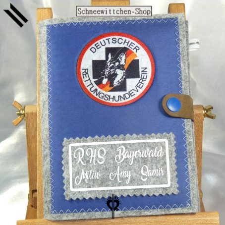 Diese Hülle dient zur Aufbewahrung des Dienstbuches und der Impfpässe der Rettungshundestaffel. Hier mit einem tollen Logo dargestellt. Auf Wunsch wird auch dein Name und der Namen deines Hundes mit aufgedruckt.