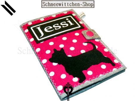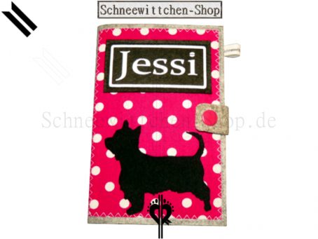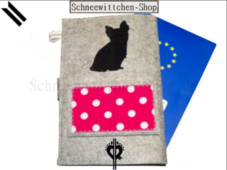 EU-Heimtierausweis Hülle Tierpasshülle Hundepasshülle Yorkshire Terrier aus Filz mit Beflockung.