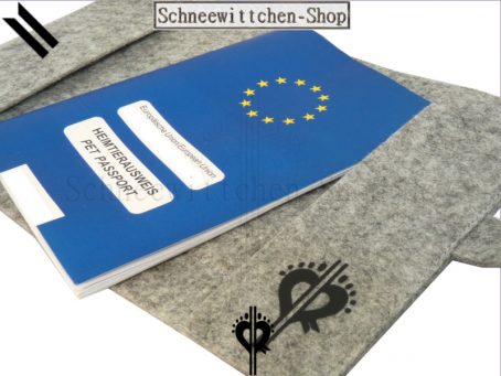 - ✔Schutzhülle für den blauen EU-Heimtierausweis. Solltest du den gelben Impfpass haben, dann dies bitte beim Kauf mit angeben