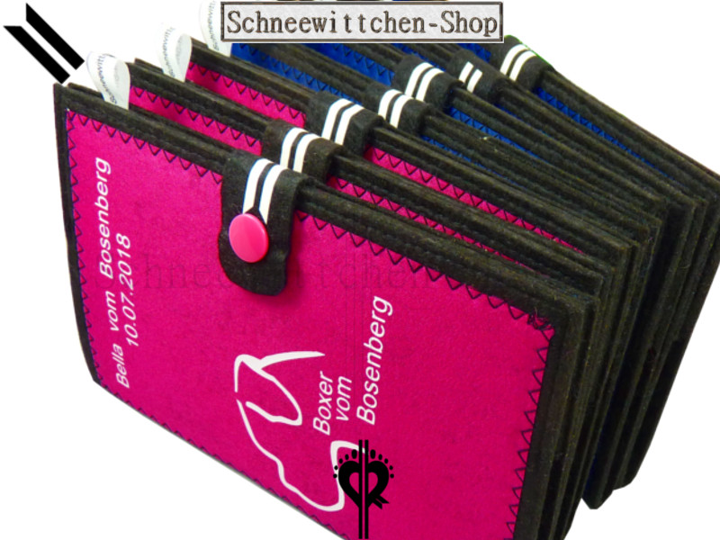 - ✔Schutzhülle für den blauen EU-Heimtierausweis. Solltest du den gelben Impfpass haben, dann dies bitte beim Kauf mit angeben